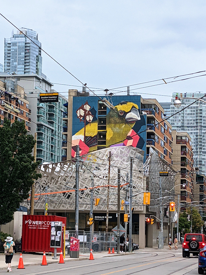 Напротив Картинной галереи Онтарио. Птичка очень убедительная, издалека видно.