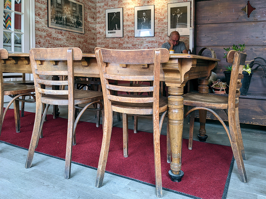 Коротала время в джазовом кафе.